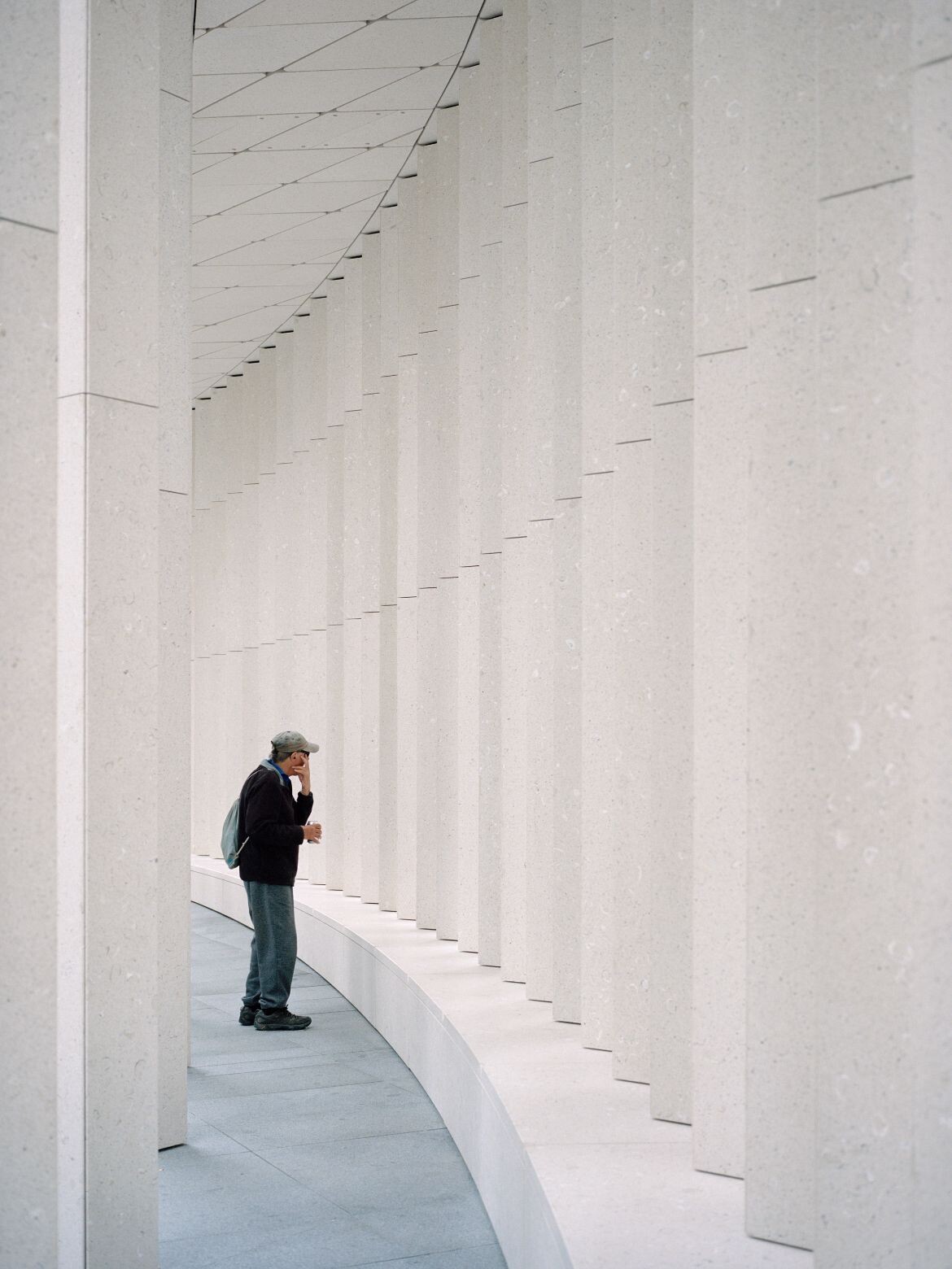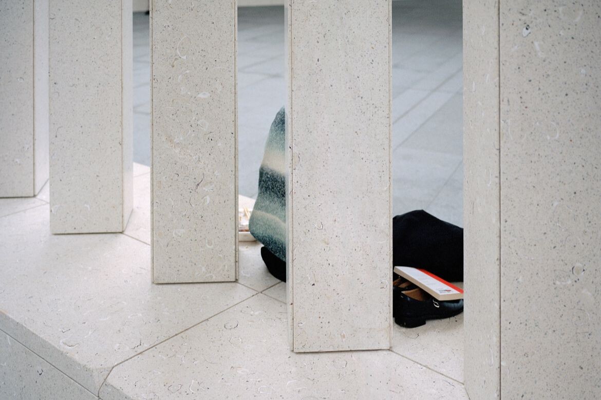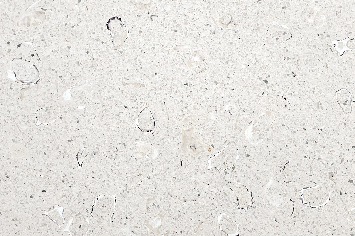 The presence of the oyster terrazzo is muted and understated – it’s not until the visitor lingers and attunes themselves to the building that its qualities become fully apparent. The beauty and complexity of the material reveals itself in close proximity.