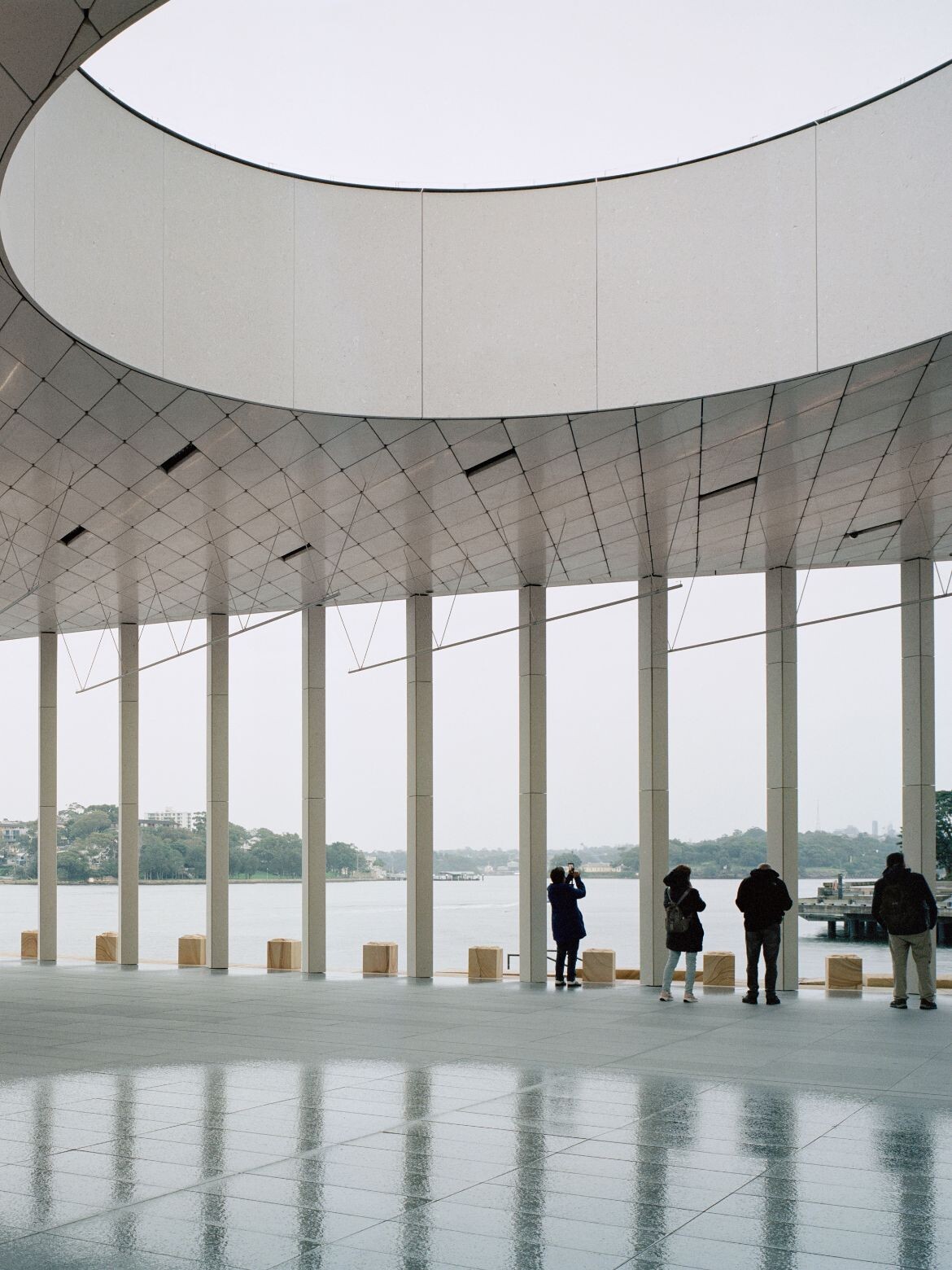 The architects subjected the raw material of oyster shells to extensive mix experimentation and testing to create an ‘oyster terrazzo’ that forms the envelope of the Pavilion. It’s a unique material solution that responds with great specificity, both in cultural and ecological terms.