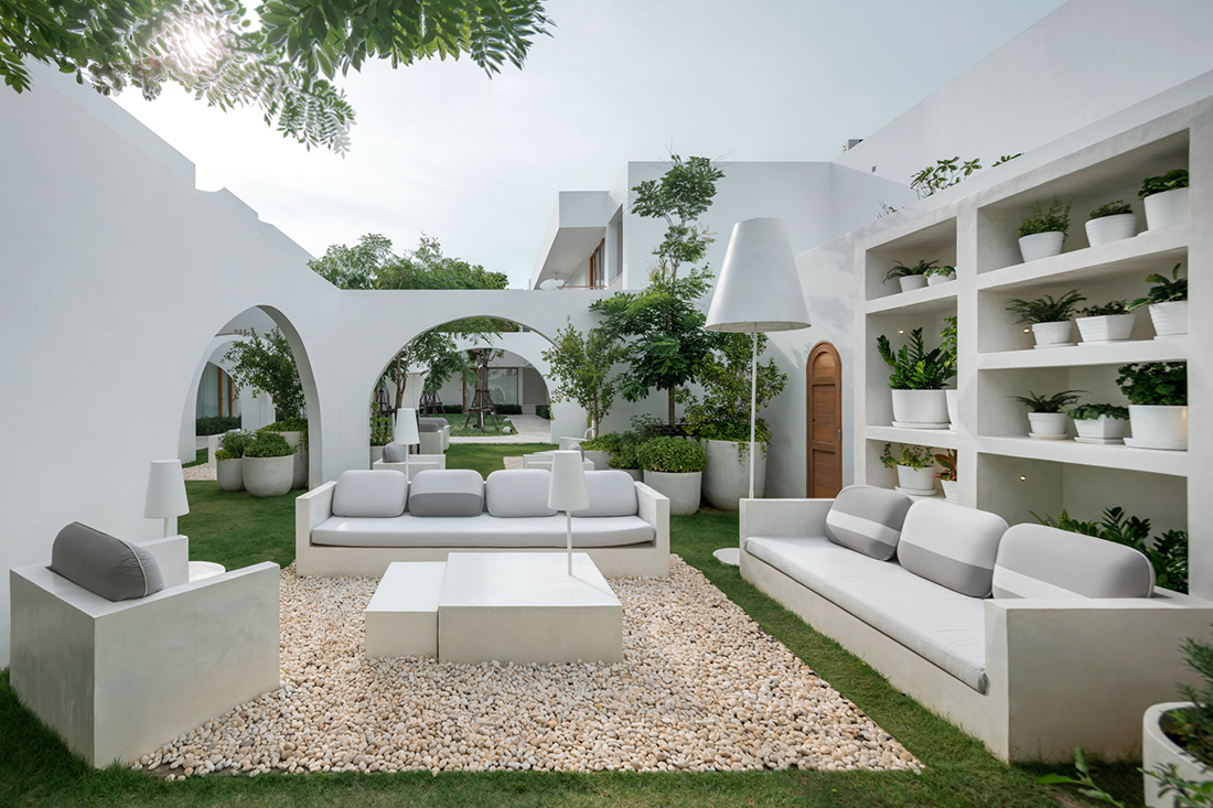 A dominant architectural element of Sala Chaweng Roadside are the lasting white walls. Elongated and robust, these formidable building blocks are sliced, as needed, in angles and arches.