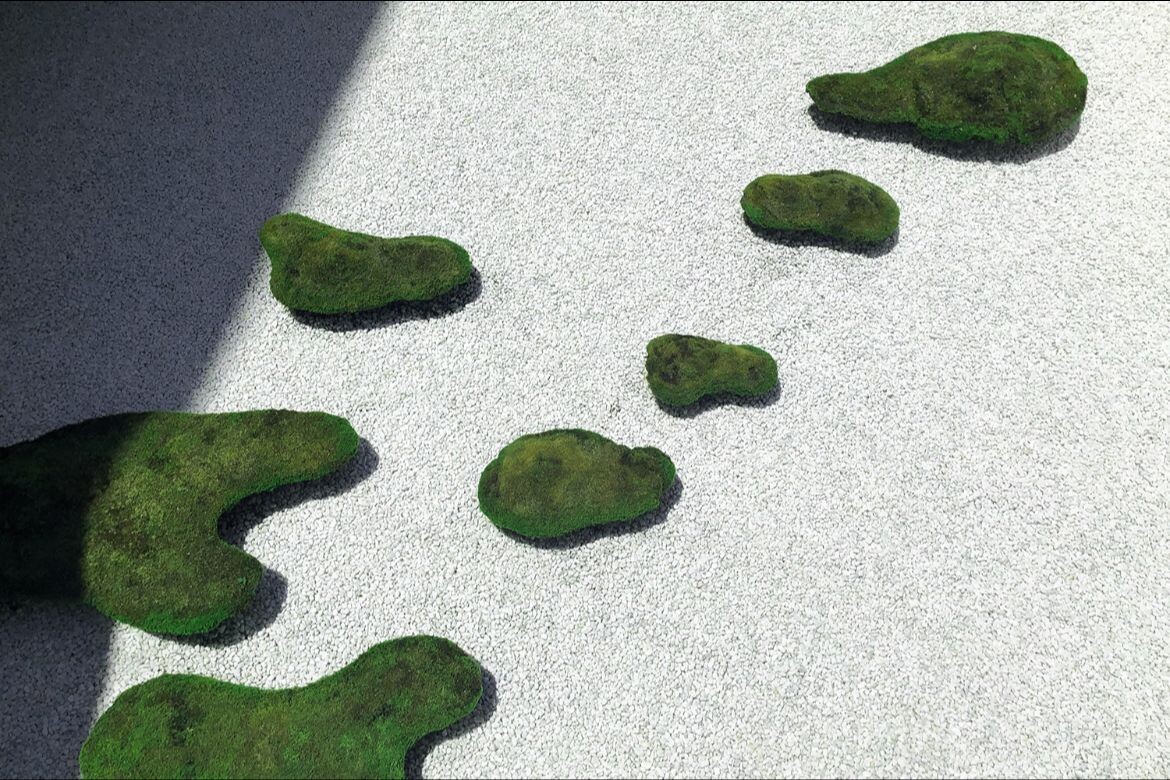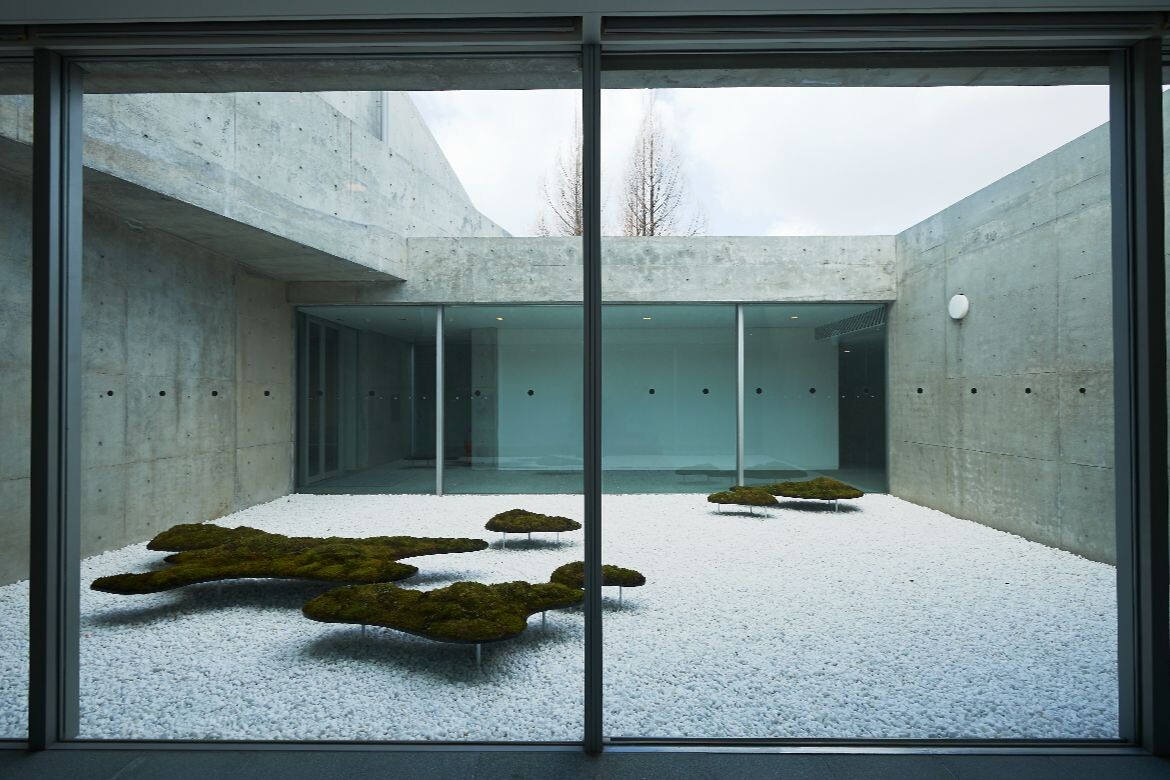 Throughout the building, circulation spaces act as moments of pause. Corridors open onto moss gardens and internal courtyards, offering visual relief and subtle transitions between programs. Even movement feels slowed, encouraged by the measured sequencing of spaces and the absence of visual noise.
