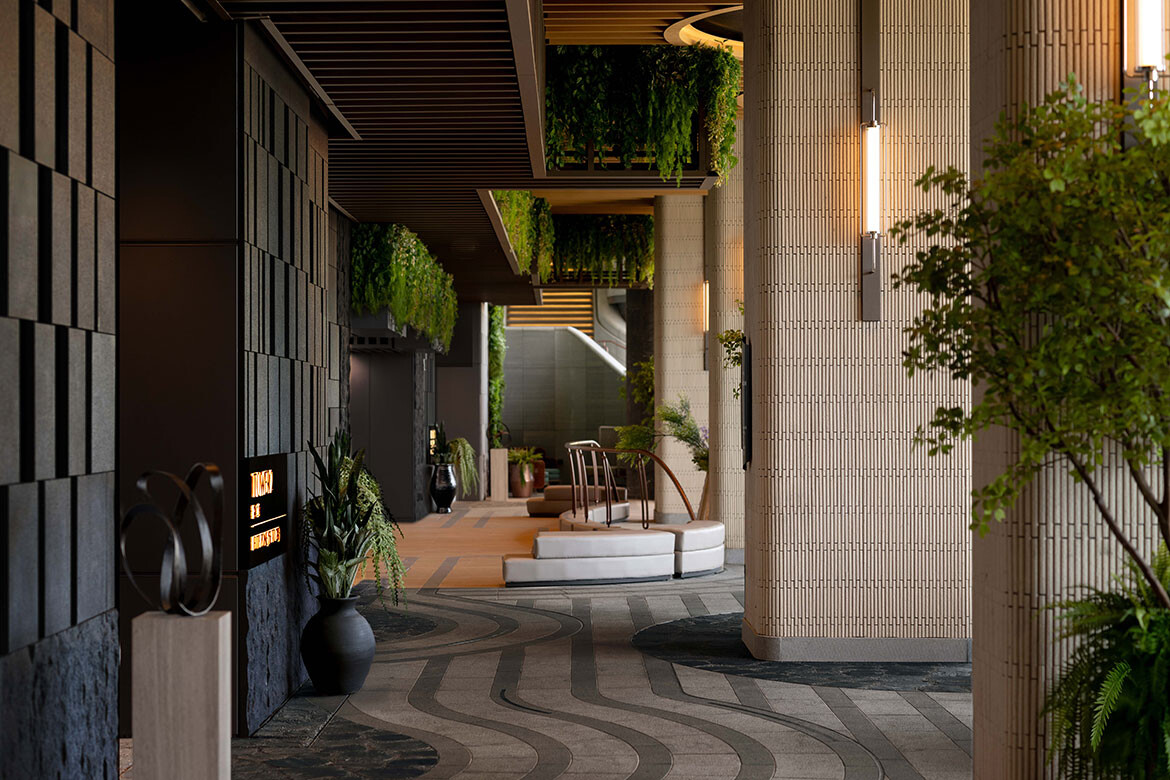 Situated between the 30th and 31st floors of The Cullinan, the clubhouse and garden float among residential towers, framed by Lion Rock to the north and Victoria Harbour to the south. The brief was to create a Sky Garden that offers residents a unique encounter with nature at height — a space that feels removed from the density below while remaining deeply connected to its surroundings.