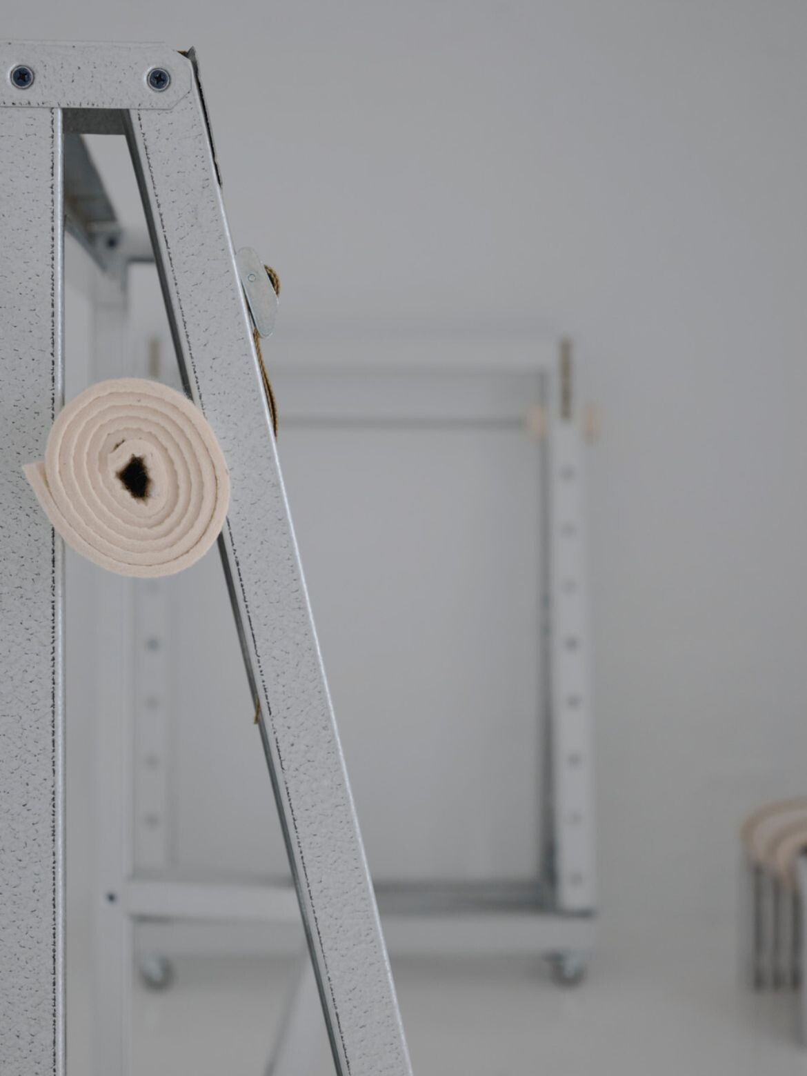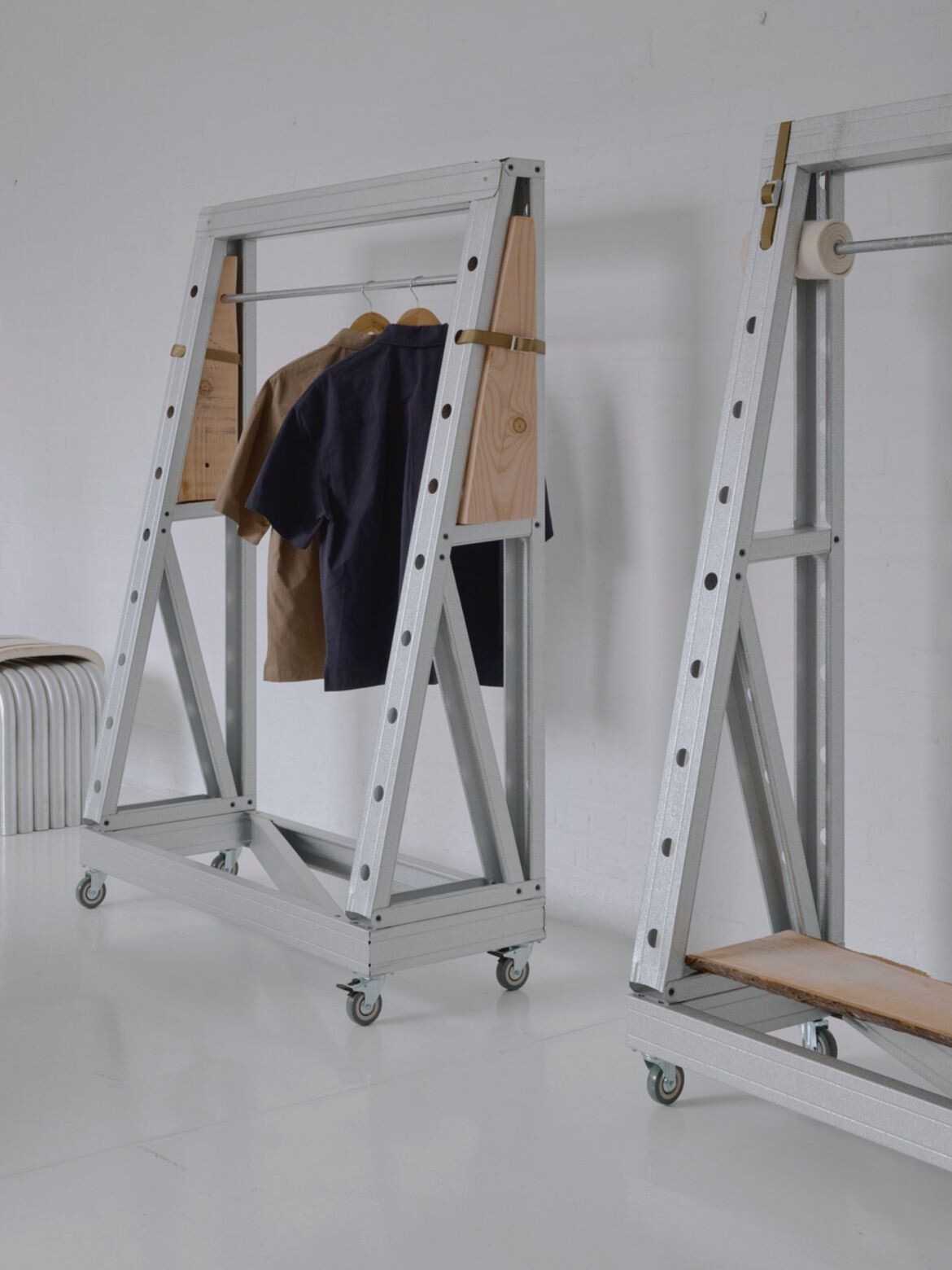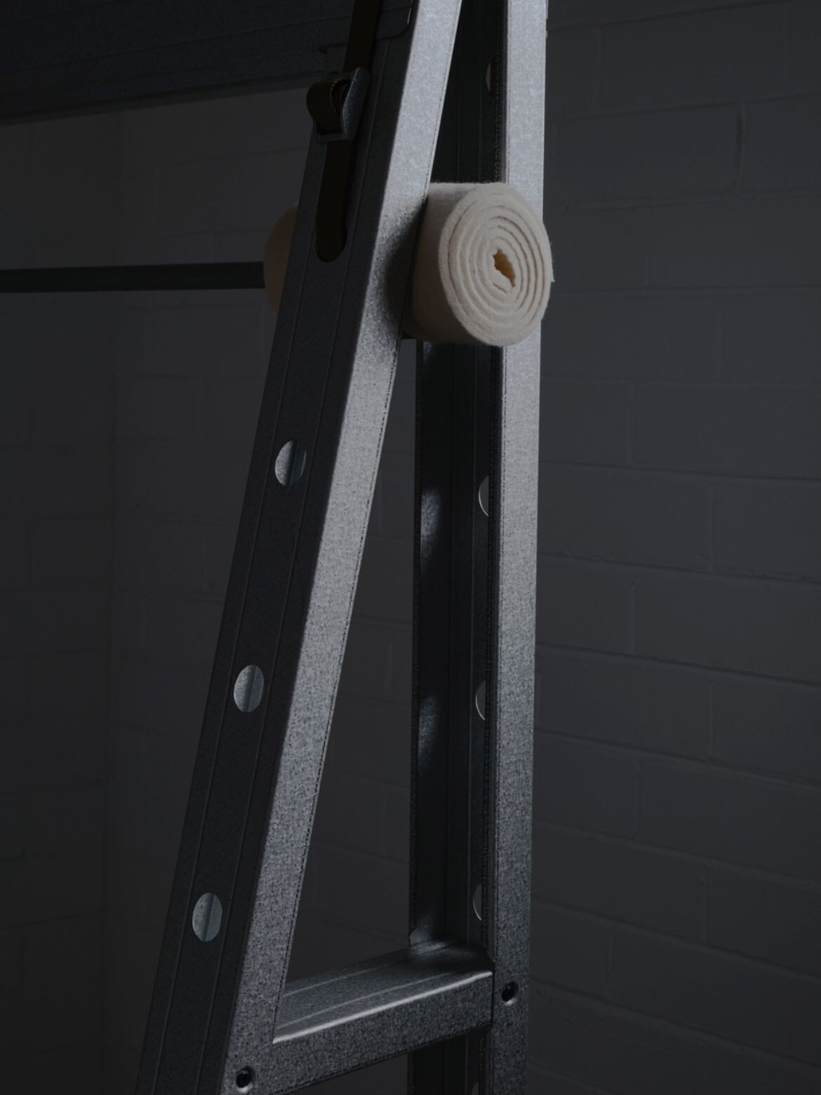Through discipline. Each material performs structurally, visually and sensorially. The system is robust but not heavy, engineered but approachable. The human touch comes from the method of assembly – the tension straps, the hand-cut timber, the layered felt wrapping the rails. The process is made visible in the result which connects people to the work.