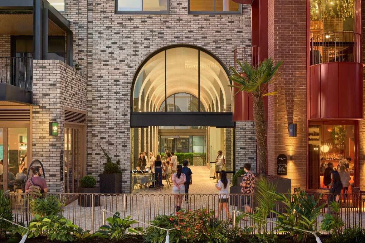 Spanning some 12,244 square metres and technically in Redfern, the multi-use precinct occupies the block bordered by Baptist, Cleveland, Marriott and Cooper Streets. From a local perspective, the Cleveland Street entrance (to the once very down-at-heel shopping centre) gives it the perceived Surry Hills address, as does its position as an extension of Crown Street. The site has now been rethought as a junction-point connecting seven villages with retail, hospitality, residential and commercial offerings. “Surry Hills Village has been stitched back in place,” states Adam Haddow, SJB director.