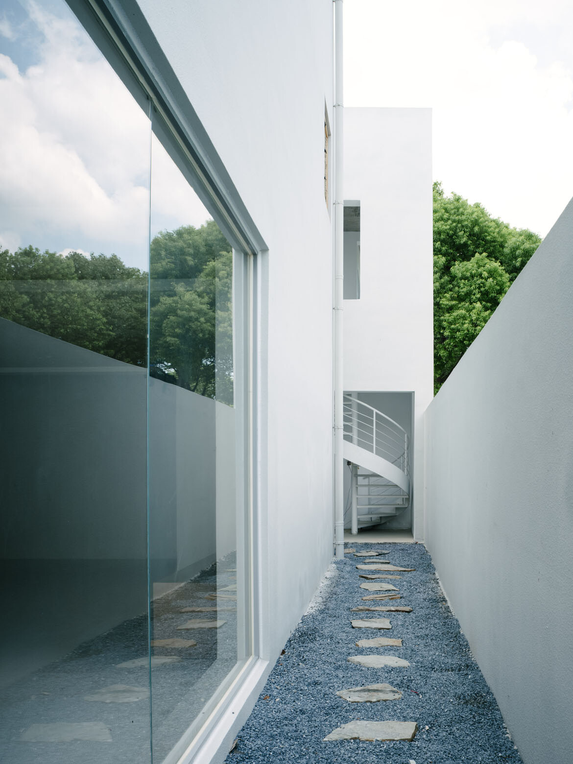 Rather than erasing the existing buildings, TEAM_BLDG retained much of their original structure, adapting them to accommodate 11 guest rooms alongside shared amenities such as a banquet hall and café. This light-touch strategy kept costs in check while allowing the new guesthouse to grow naturally from what was already there. A perimeter wall unifies the site, while three inserted architectural volumes act as connectors, housing key public functions and organising circulation across the property.