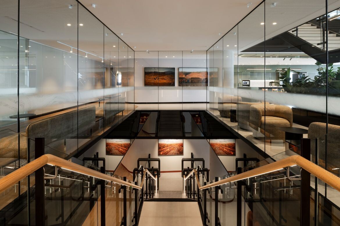 High above Perth’s bustling CBD, a transformation has taken place that challenges what it means to bring landscape indoors. Woods Bagot‘s comprehensive redesign of the Perth headquarters of a major mining company spans 40,000-square-metres across 19 levels, creating a workplace that embodies Western Australia’s iconic terrain.